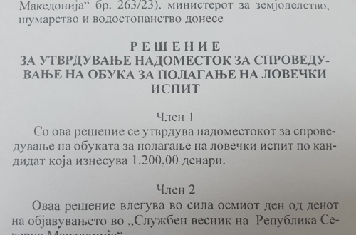 НОВ ТЕРМИН ЗА ОБУКА! СПИСОК на кандидати кои ќе следат обука за полагање на ловечки испит на ден 1-ви јуни…