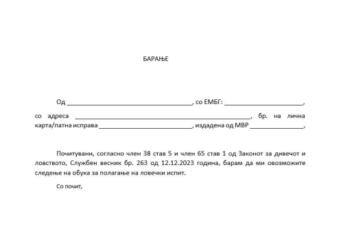 ИЗВЕСТУВАЊЕ! Сите кандидати кои уплатиле или ќе уплатат за следење на обука за полагање на ловечки испит, да пополнат барање…